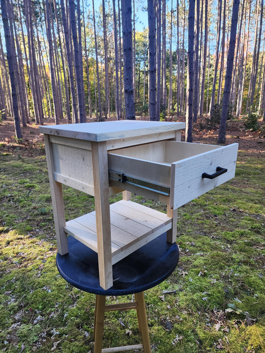 Farmhouse table, End Table, custom handmade with USB ports and electrical outlets