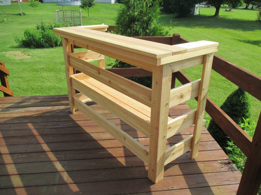 Outdoor Cedar Patio Bar - Sturdy, Elegant and Convenient with Adjustable Shelving.