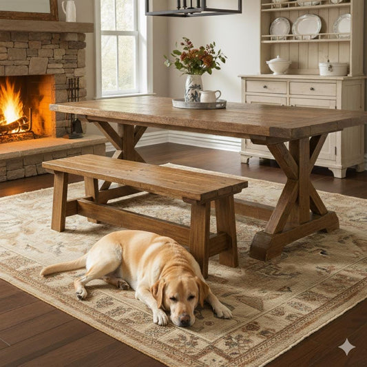Modern Farmhouse Dining Table with Rustic-Wheat or Smoke-Brown Finish